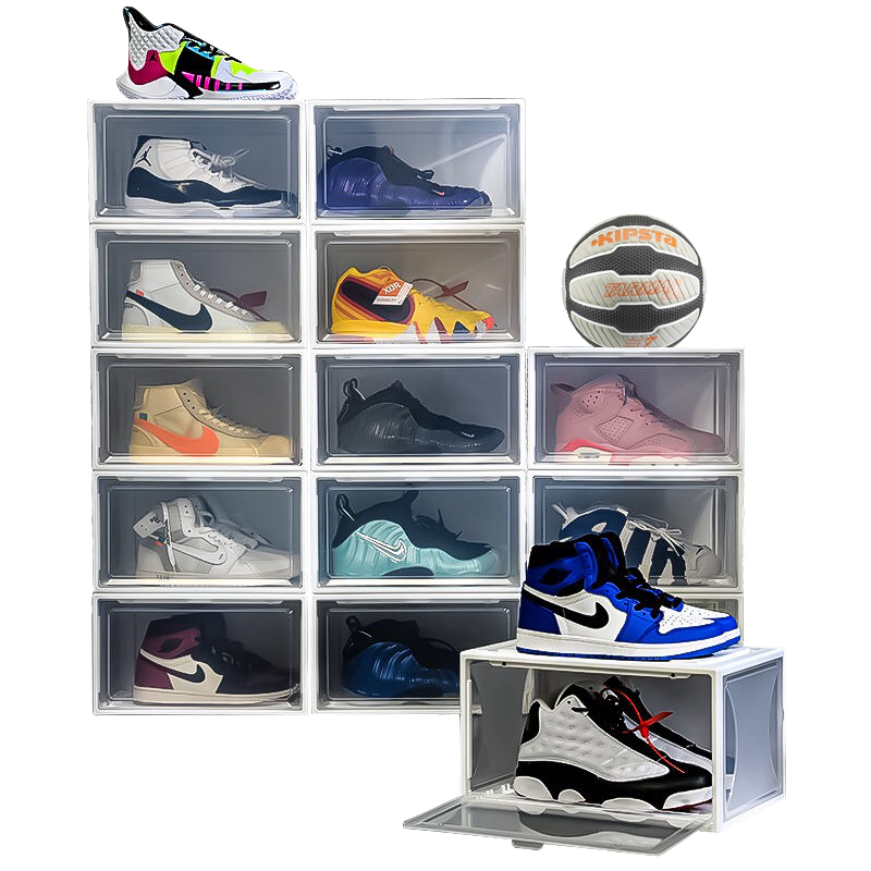 صندوق تخزين وتنظيم الأحذية الرياضية من المصنع، قابل للطي ومخصص، مصنوع من الأكريليك الشفاف والبلاستيك بباب مغناطيسي للعرض